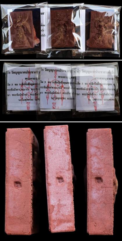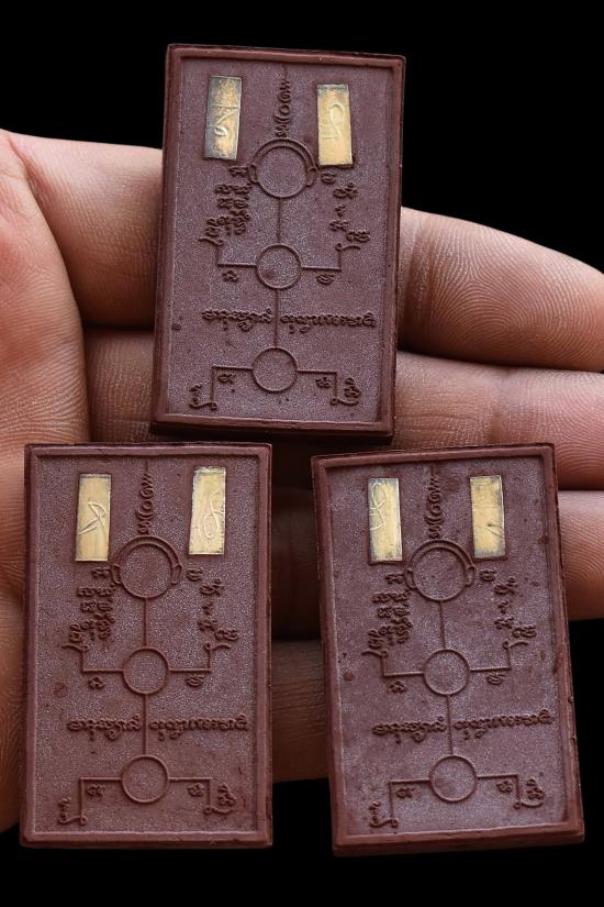 ชุด 3 องค์...เพชรพญาธร เนื้อมหาว่านพันนารีรัก ร้อยนารีหลง ผสมว่านเสน่ห์จันทร์แดง (ผงมวลสารล้วน ครูแรงเต็มสูตร) โรยชนวนอาถรรพณ์ หลังยันต์หุ่นมหาเสน่ห์ ฝังตะกรุดเงินลงนะเมตตา 2 ดอก มวลสารครู ปี 2552 หลวงปู่เฉลิม วัดบุญนาคประชาสรรค์ จ.สมุทรสงคราม พร้อมซองรูปใบฝอยเดิมจากวัด สภาพพระตามรูปที่ลงทุกประการ (ขนาดประมาณ 4.7 x 2.9 ซม.)
