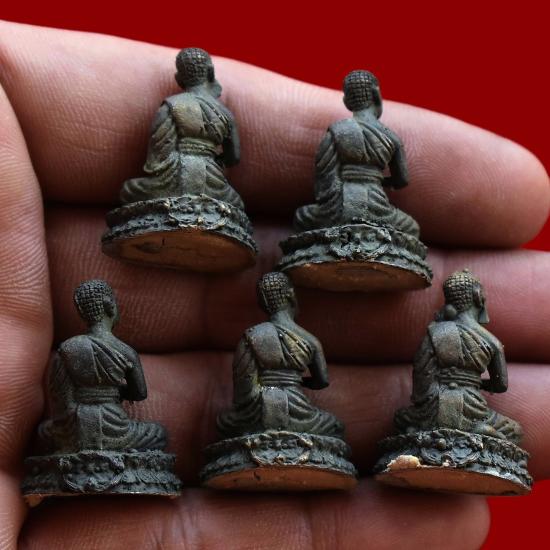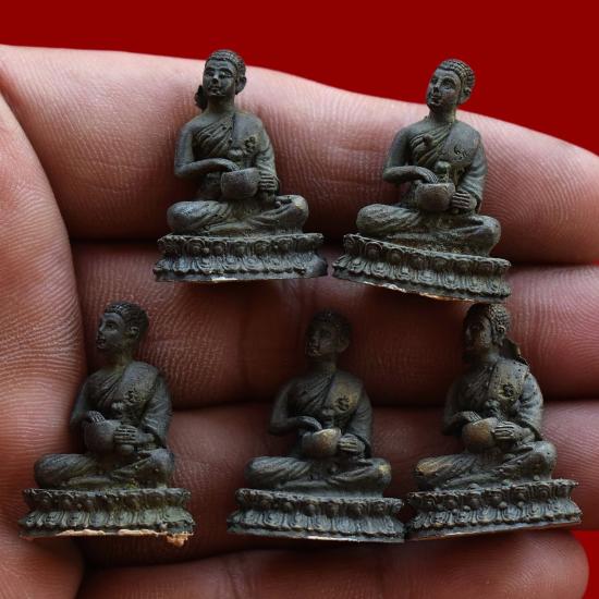 ชุด 5 องค์...พระอุปคุตจกบาตรก้นย่าม (มีกินไม่ขาด อดไม่เป็น จนไม่ได้) เนื้อทองชนวนผสม ปี 2558 หลวงปู่สิงห์ วัดบ้านป่าตะแบง จ.นครราชสีมา พร้อมซองใบคาถาเดิมจากวัด สภาพพระตามรูปที่ลงทุกประการ (ขนาดประมาณ 3 x 2 ซม.)