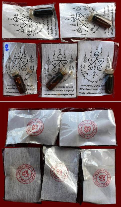 ชุด 5 ขวด...น้ำมันว่านทิพย์จันทรามหาเสน่ห์ ปี 2553 หลวงปู่สมชาย วัดคงคา จ.กาญจนบุรี พร้อมซองใบยันต์เดิมจากวัด สภาพพระตามรูปที่ลงทุกประการ