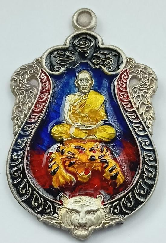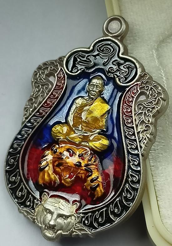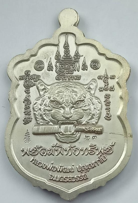เหรียญเสมา "พยัคฆ์พิทักษ์ทรัพย์" หลวงพ่อพัฒน์ วัดห้วยด้วน เนื้อเงินซาตินลงยาขุ้ยพื้น เบอร์ 23 พร้อมกล่องเดิมครับ (เหรียญหนัก 17.40 กรัม)