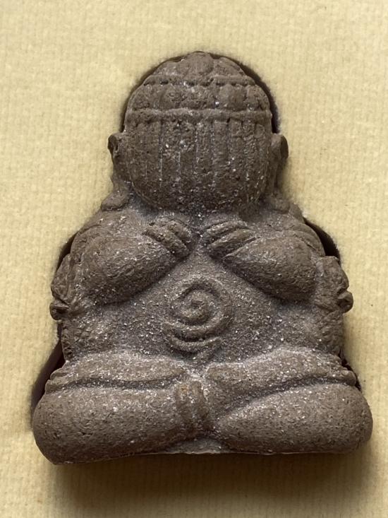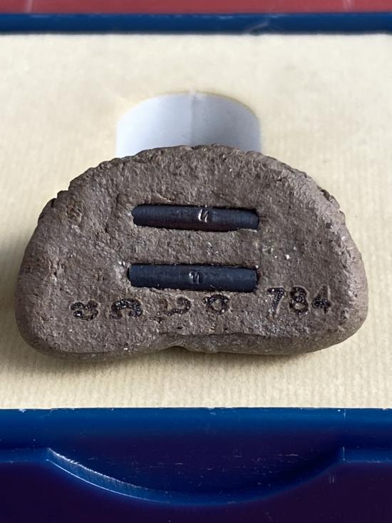 เนื้อ ดินผสมว่านตะกรุดเงินคู่ มีโค๊ตและหมายเลข |