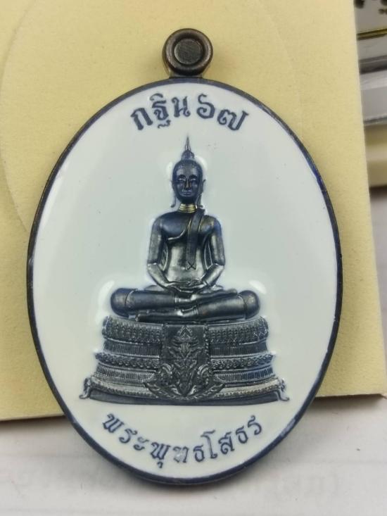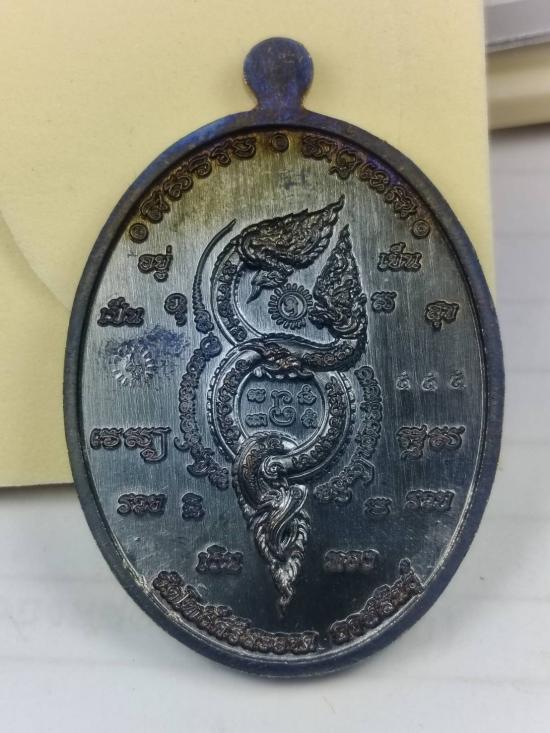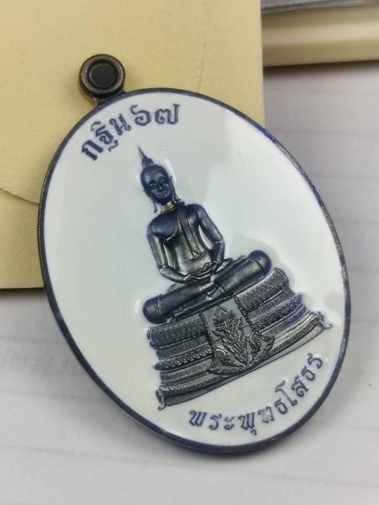 เหรียญหลวงพ่อโสธร หลังนาคเกี่ยว หลวงปู่มหาศิลา สิริจันโท ออกวัดโพธิ์ศรีสะอาด จ.กาฬสินธุ์ เนื้อทองแดงรมดำลงยาขาว หมายเลขตอง 555 พร้อมกล่องเดิม