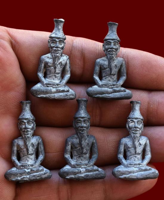 ชุด 5 องค์...ปู่แก่ เนื้อชินตะกั่วผสมแร่อาถรรพณ์ ใต้ฐานจารยันต์ ปี 2555 หลวงพ่อสวาท วัดบางพึ่ง จ.สมุทรปราการ พร้อมซองรูปใบฝอยเดิมจากวัด สภาพพระตามรูปที่ลงทุกประการ (ขนาดประมาณ 2.5 x 3 ซม.)