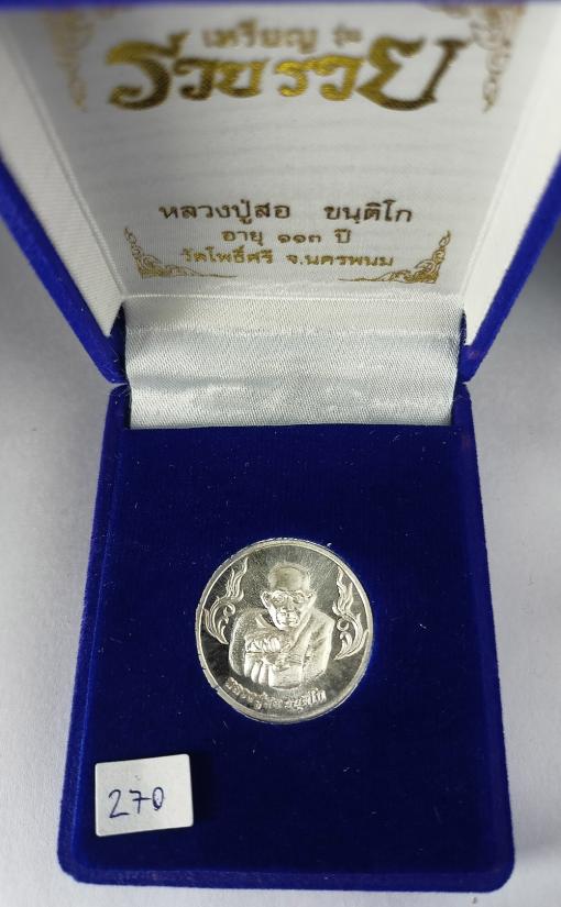 เหรียญกลม รุ่น"รวยรวย" หลวงปู่สอ ขันติโก วัดโพธิ์ศรี เนื้อเงิน เบอร์ 270 พร้อมกล่องเดิมครับ