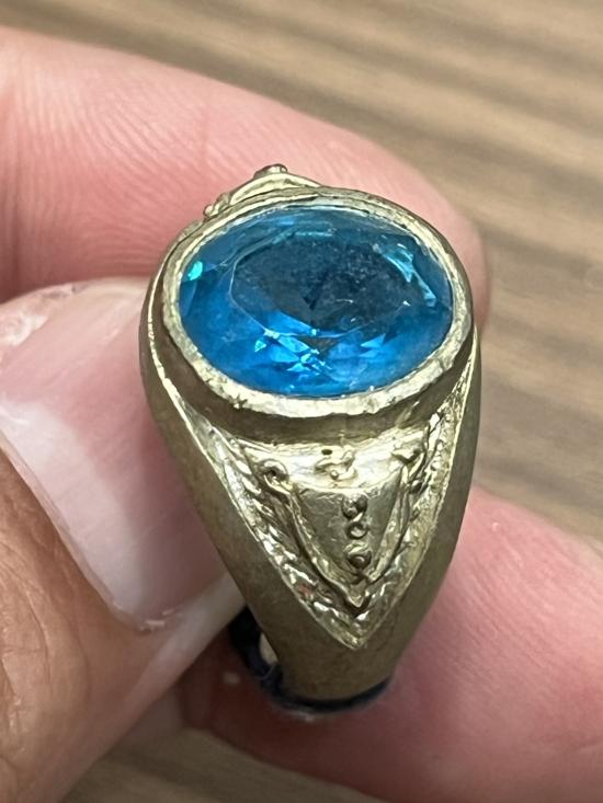 ไม่ทราบรายละเอียด ติดเหมาบ้านมาครับ มีเป็นแหวน2วง มีเป็นเหรียญหล่อผ่านไถ4อัน(ใหญ่2เล็ก2) แต่ได้จากเจ้าของที่เป็นคนนครศรีฯ