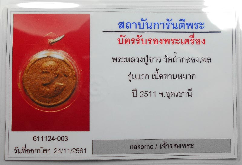 พระพิมพ์จันทร์ลอยรุ่นแรก หลวงปู่ขาว วัดถ้ำกลองเพล ปี 2511 เนื้อชานหมาก มีเส้นเกศา เลี่ยมเก่าจากวัด พระเก็บเก่ามานานครับ