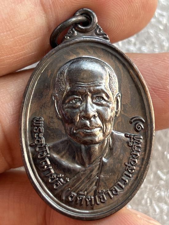 เหรียญที่ระลึกเททองหล่อรูปบูรพาจารย์ หลวงพ่ออี๋ วัดสัตหีบ ชลบุรี ปี ๖๓ เนื้อทองแดงรมดำ ผิวเดิม