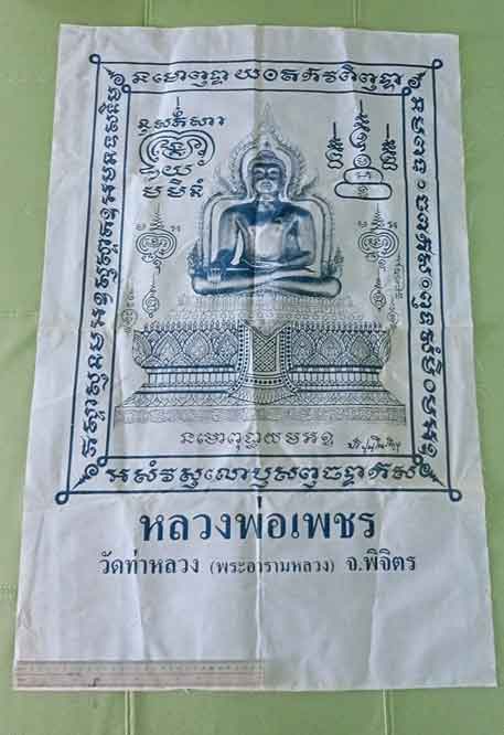 ผ้ายันต์ผืนใหญ่ สูง 2.8 ฟุต กว้าง 2 ฟุต หลวงพ่อเพชร วัดท่าหลวง พิจิตร |