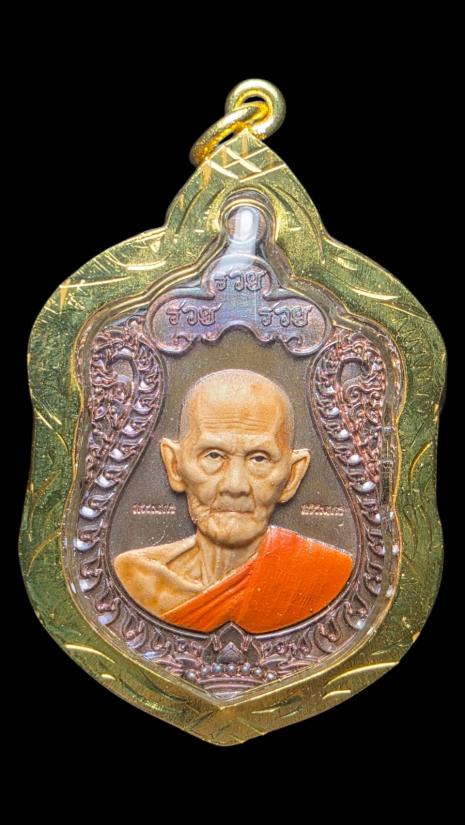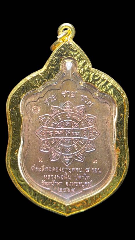 เหรียญเสมา8รอบรุ่นรวยรวยรวย หลวงปู่ฝั้น ปสาโท วัดหน้าผา (เนื้อนวะหน้ากากเพ้นท์เสมือนจริงเลี่ยมกรอบ เลข9 |
