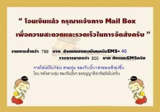 ป.ล ส่งไปรณีย์ไทย ทุกรายการครับ หยุุด เสาร์ วันอาทิตย์
