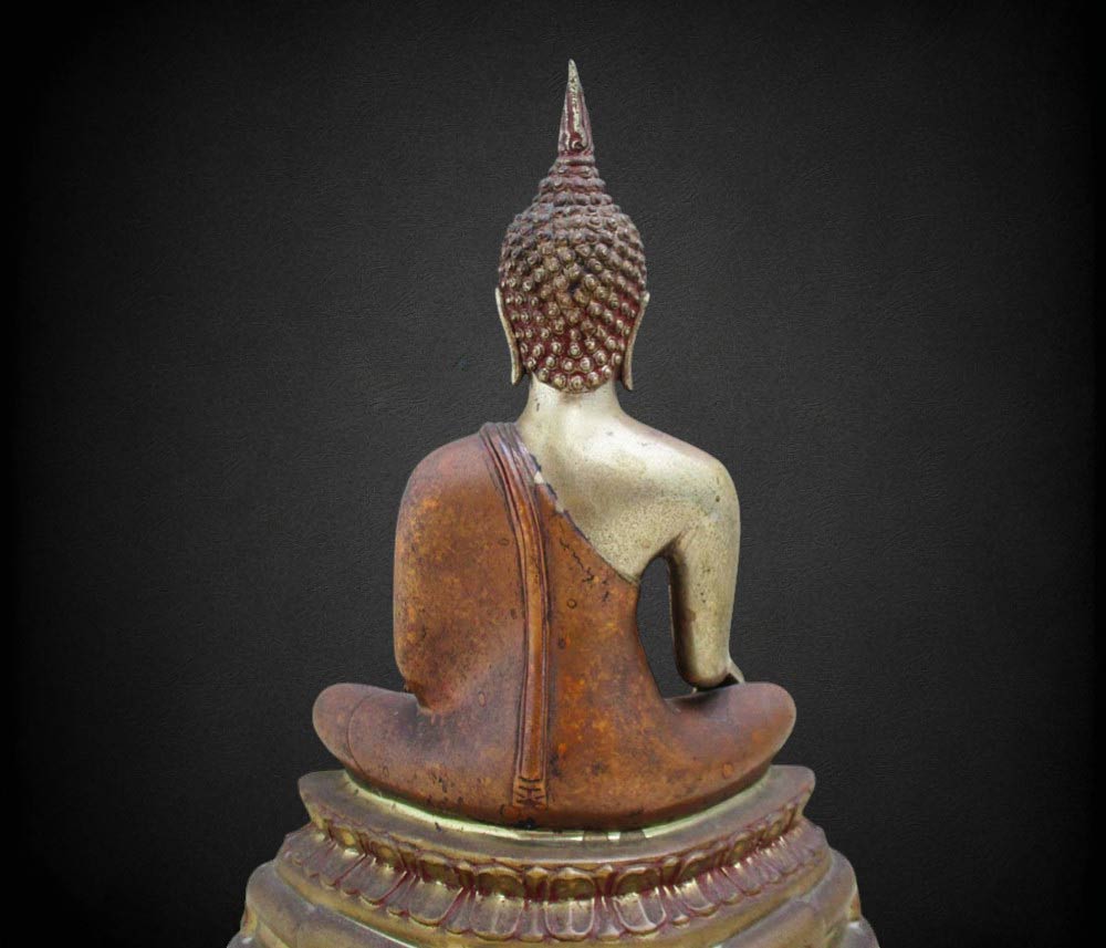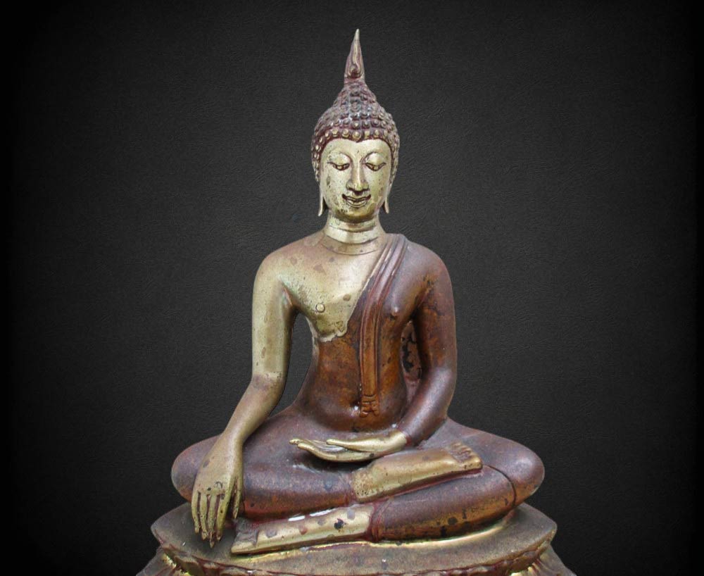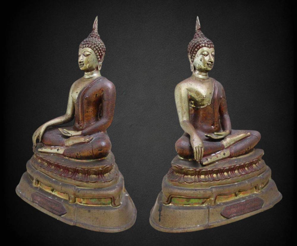 องค์พระกับฐานบัดกรีเชื่อมติดกัน หล่อดินไทยสีดำ - แดง !!