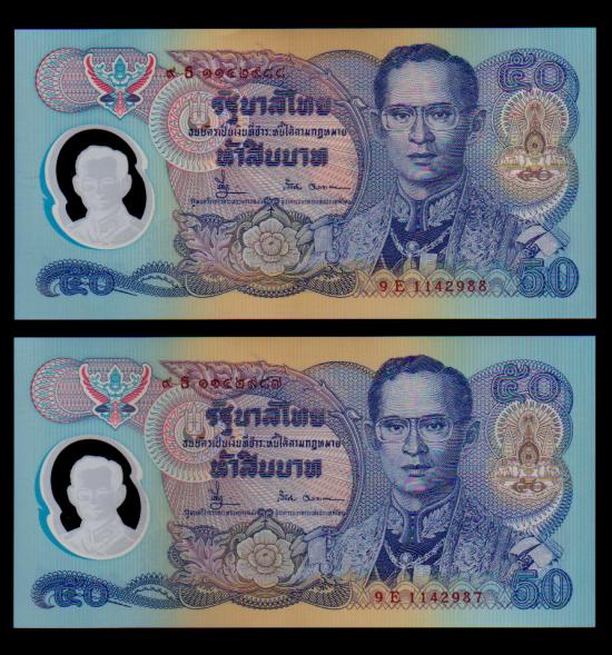 ## ธนบัตร 50 บาท ## กาญจนา ## 2 ฉบับ ## ไม่ผ่านการใช้ |