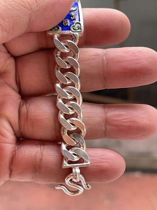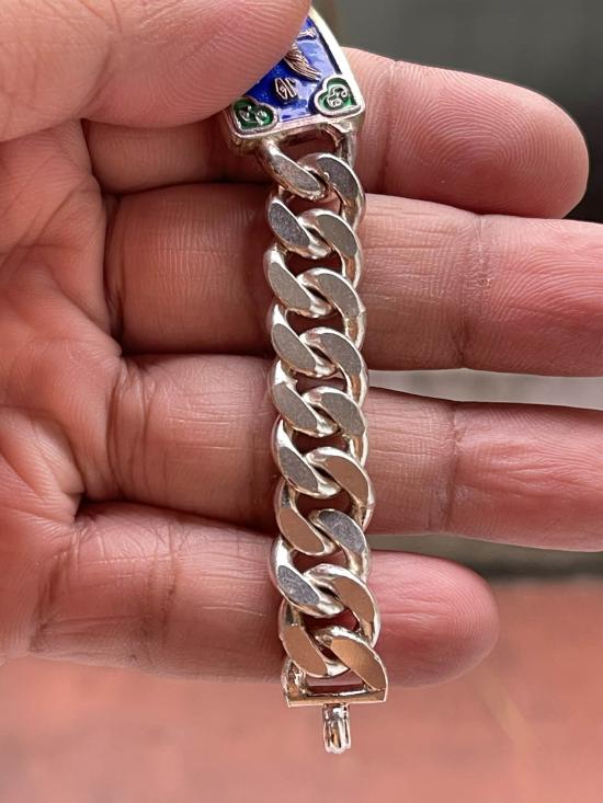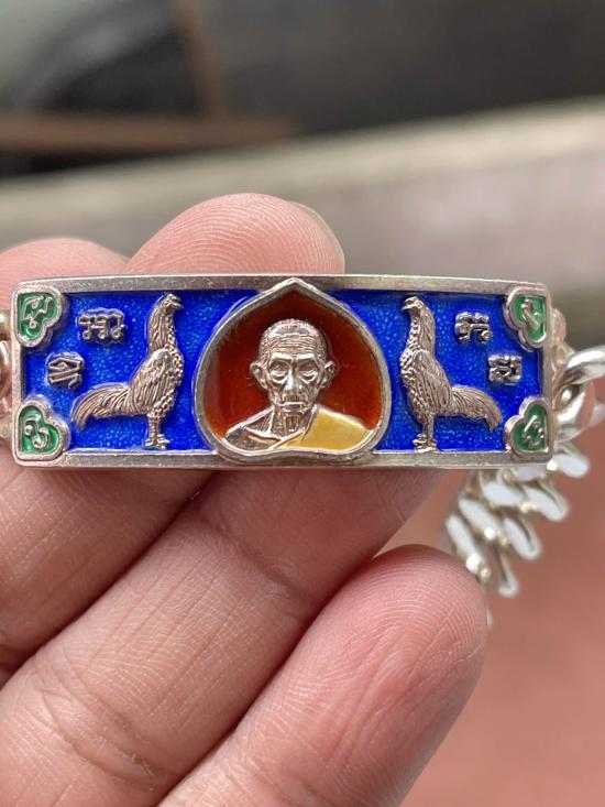 หลวงพ่อรวย วัดตะโก จ.อยุธยา เลสข้อมือ รุ่นรวยพญาไก่ ปี2560 เนื้อเงินลงยา เลข2 ขนาด4บาท