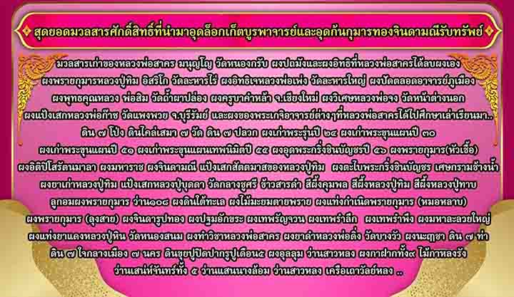 ผงเก่ามวลสารศักดิ์สิทธิ์เก่า หลวงปู่ทิม วัดละหารไร่ หลวงพ่อสาคร วัดหนองกรับ และมวลสารเก่ามากกว่า 100 มวลสาร เกศา จีวร พลอยเสก
