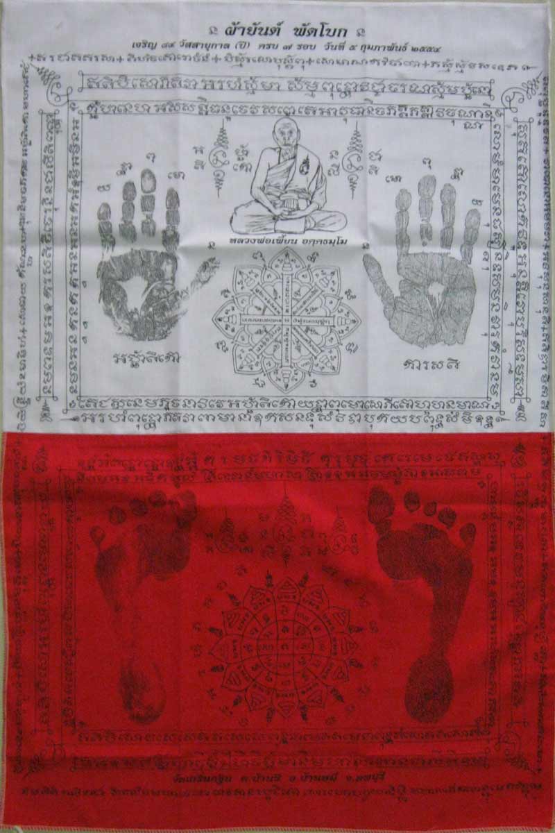 ผ้ายันต์พัดโบก (รุ่นแรก) รอยมือ รอยเท้า หลวงพ่อเพี้ยน วัดเกริ่นกฐิน รุ่นเจริญพร ขนาดใหญ่ 20X30 นิ้ว |