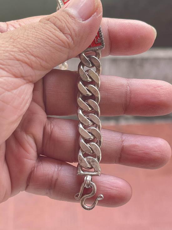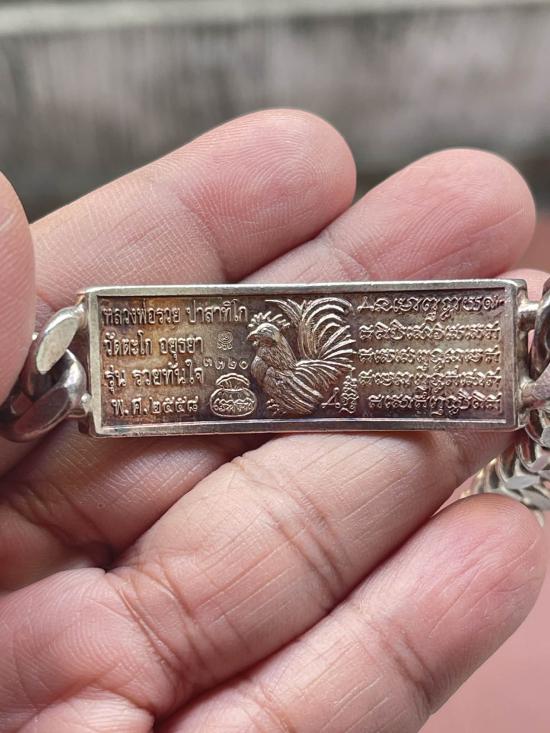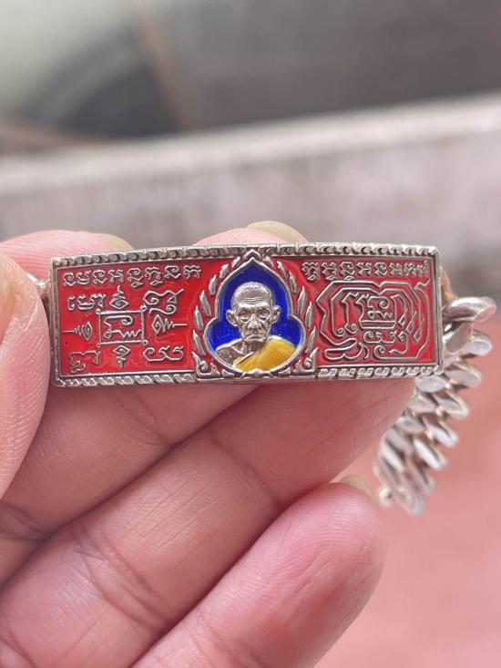 หลวงพ่อรวย วัดตะโก จ.อยุธยา เลสข้อมือ รุ่น รวยทันใจ ปี2558เนื้อเงินลงยา ขนาด4บาท