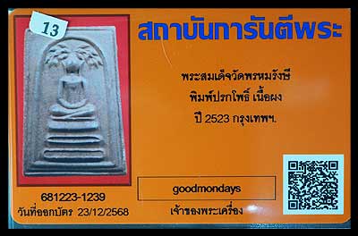 พระสมเด็จ พิมพ์ปรกโพธิ์ ปี2523 วัดพรหมรังษี กทม หลวงปู่โต๊ะร่วมปลุกเสก