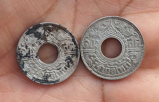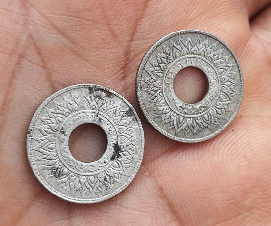 วัดใจเหรียญสตางค์รูแข้งสิงห์เนื้อเงิน 10 สตางค์จำนวน 2 เหรียญ |