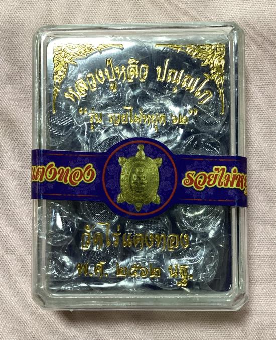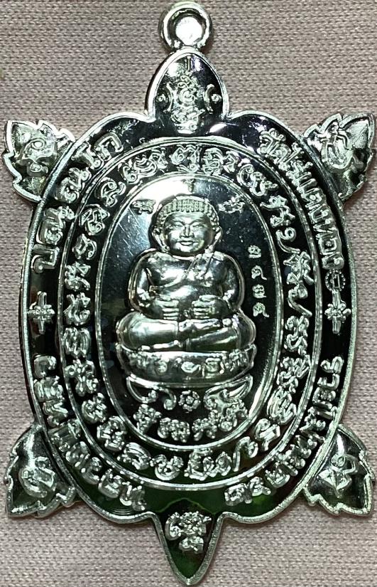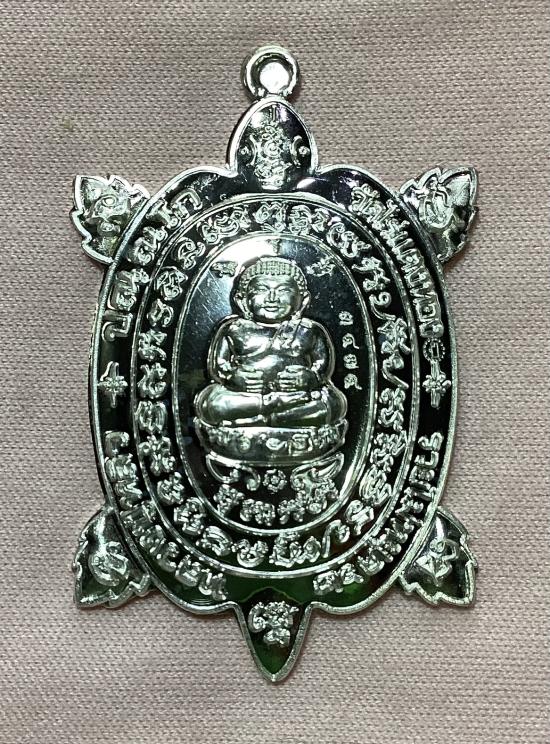 เหรียญพญาเต่าเรือน หลวงปู่หลิว วัดไร่แต่งทอง จ.นครปฐม รุ่นรวยไม่หยุด 62 เนื้อเงิน หมายเลข 3474 พร้อมกล่องครับ