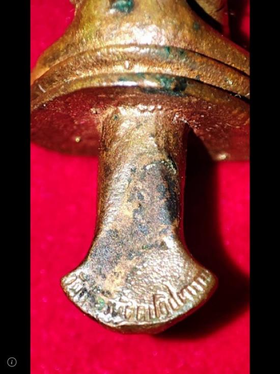 เคาะเดียวแดง พระยอดธงกัมมัฏฐาน หลวงปู่เจี๊ยะ รุ่นสุดท้าย เดือยขวาน สร้างประมาณปี พ.ศ. 2547 มวลสารจากโลหะเก่าที่เหลือจากการสร้างพระยอดธงในแต่ละรุ่นที่ผ่านมาเป็นการรวมชนวนทุกรุ่น |