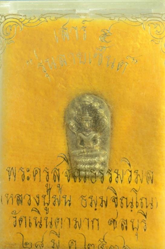 13- พระนาคปรกใบมะขาม รุ่นลายเซ็นต์ เสาร์ห้า พระครูสุจิณธรรมวิมล หลวงปู่ม่น ธัมมจิณโณ วัดเนินตามาก จ.ชลบุรี ปี 2536 เนื้อเงิน ตอกโค๊ต พร้อมกล่อง