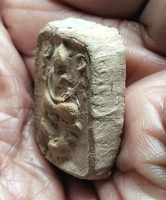 พระเนื้อดิน พิมพ์ขี่ไก่ ลพ. ฤษีลิงดำ ปี 18