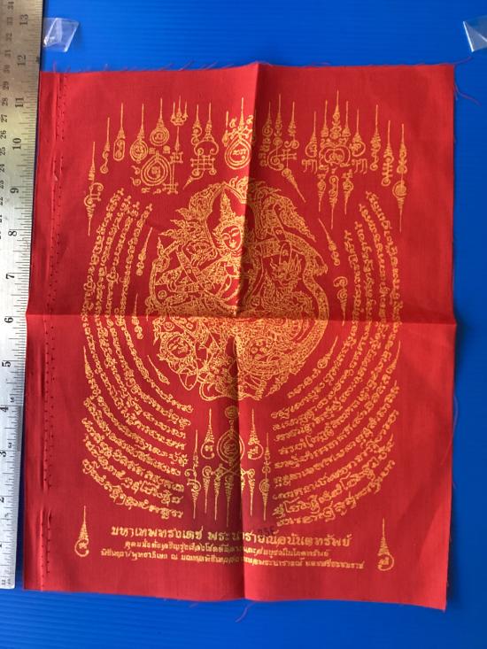 ผ้ายันต์ พระนารายณ์ อนันตทรัพย์ เทวสถานหอพระนารายณ์ จ.นครศรีธรรมราช สีแดง ขนาด A4