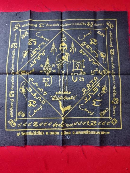 ผ้ายันต์ พี่ไข่วัดเจดีย์ สีดำมีหมายเลขกำกับหนูไม่ทราบรุ่นและปี เหมาพระบ้านติดมา เคาะเดียวแดง