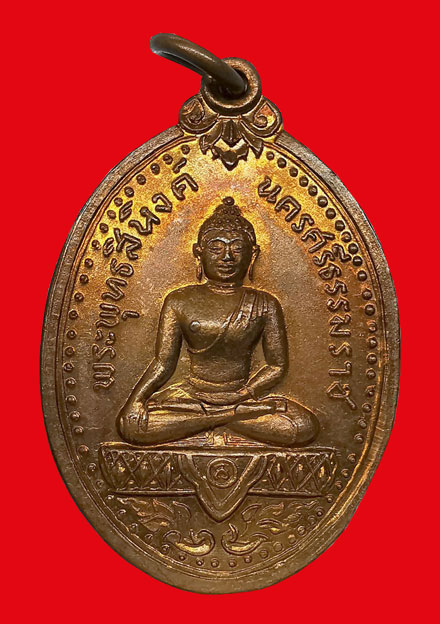 เหรียญพระพุทธสิหิงค์ วัดมหาธาตุฯ พิมพ์ใหญ่ เนื้อทองแดง ห่วงเดิม ปี2517 จ.นครศรีธรรมราช + บัตรG-pra สภาพสวยเดิมค่ะ |