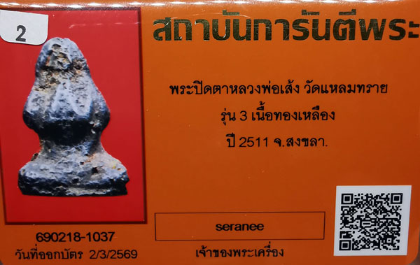 พระปิดตาหลวงพ่อเส้ง วัดแหลมทราย รุ่น3 เนื้อทองเหลือง ปี2511 จ.สงขลา + บัตร G-pra สภาพเดิมค่ะ