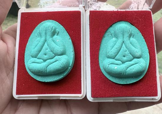 พระปิดตามหาลาภจัมโบ้ เนื้อเขียวเหนี่ยวทรัพย์ หลวงปู่อินทร์คำ วัดไชยสถาน พระพุทธเจดีย์ 9 ยอด จังหวัดเชียงใหม่ ปี2558 (ได้2องค์)
