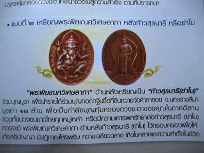 เหรียญพระพิฆเนศวิเศษลาภา ด้านหลังแม่ย่าโมวัดศาลาลอย โคราช ปี55 - อ.ลักษณ์ เรขานิเทศ ตอกโค๊ดกำกับ 2 ตัว