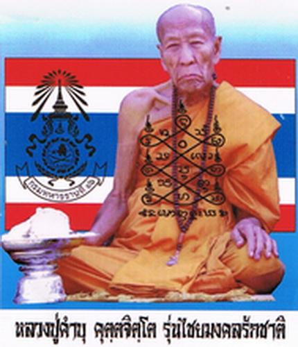 => เหรียญหลวงปู่คำบุ คุตฺตจิตฺโต รุ่น ไชยมงคล รักชาติ จัดสร้างโดย กรมทหารราบที่ ๑๖ วัตถุประสงค์เพื่อนำแจกทหารที่ลงปฏิบัติหน้าที่ใน ๓ จังหวัด ชายแดนใต้ โดยนิมนท์พระอริยสงฆ์สายอีสาน รวมอธิฐานจิตปลุกเสก หลายรูป อาทิ หลวงปู่บุญหลาย อคคฺตจิตโต , หลวงปู่จอม นาคเสโน , หลวงปู่ดี วัดบ้านสร้างแก้วเหนือ , หลวงปู่อ่อง วัดสิงหาญ , หลวงปู่ทองวัน วัดบ้านปากโดม และพระอริยสงฆ์รูปอื่นๆ อีกหลายรูปร่วมอธิฐานจิต โดยมี หลวงปู่คำบุ คุตฺตจิตโต เป็นประธานฝ่ายสงฆ์ ในวันที่ ๒๗ มิถุนายน ๕๒
