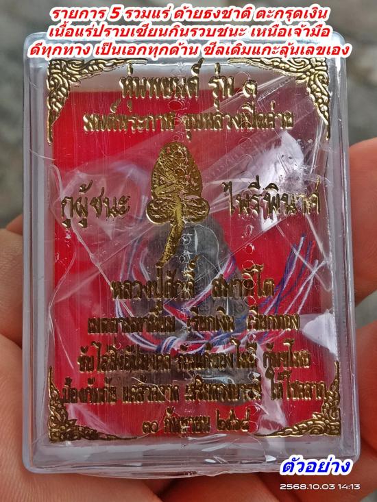 หุ่นพยนต์ รุ่น 3 กูผู้ชนะ ปราบไพรีพินาศ หลวงปู่ศักดิ์ สมาหิโต รายการ 5 รวมแร่ ด้ายธงชาติ ตะกรุดเงิน เนื้อแร่ปราบเซียนกินรวบชนะเหนือเจ้ามือ ดีทุกอย่าง เป็นเอกทุกด้าน ซีลเดิมแกะลุ้นเลขเอง 1 ลุ้น