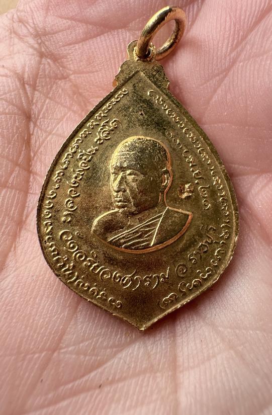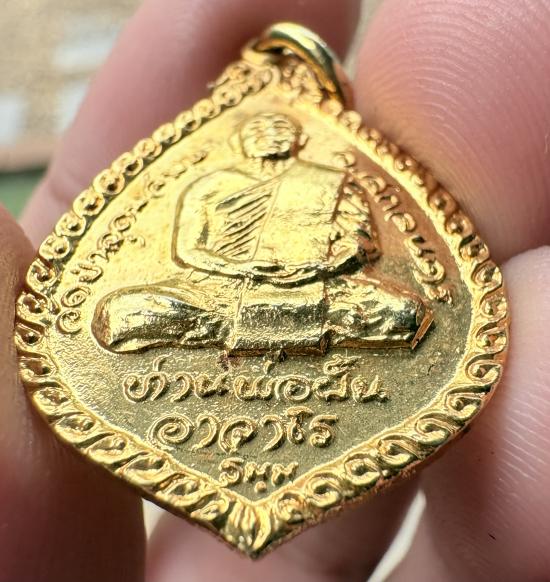 เหรียญหลวงปู่มหาปิ่น ชลิโต หลังท่านพ่อฝั้น วัดอริยวงศาราม หยดน้ำ ปี๒๕๒๑ เนื้อกะไหล่ทอง