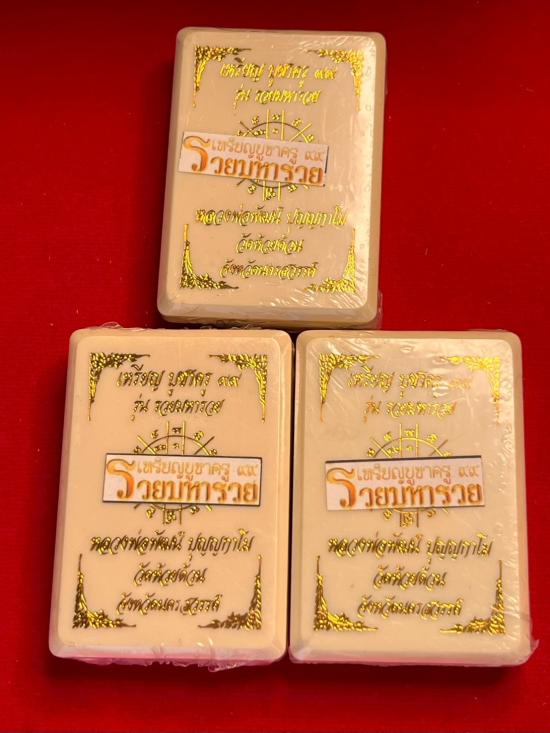 ลุ้นไม่แกะซีล หลวงพ่อพัฒน์ ปุญฺญกาโม วัดห้วยด้วน รุ่น รวยมหารวย เหรียญบุชาครู 99 ( 1 กระดาน 3 องค์) |