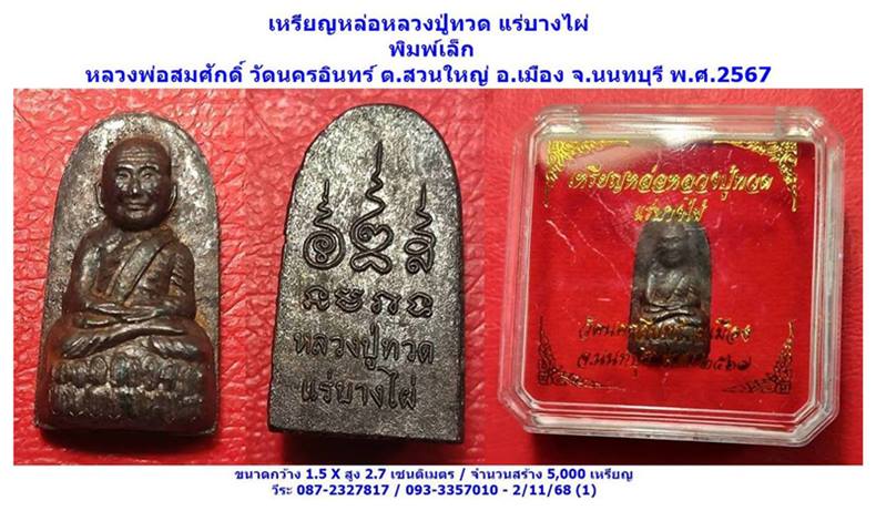 เหรียญหล่อหลวงปู่ทวด แร่บางไผ่ พิมพ์เล็ก หลวงพ่อสมศักดิ์ วัดนครอินทร์ ต.สวนใหญ่ อ.เมือง จ.นนทบุรี พ.ศ.2567