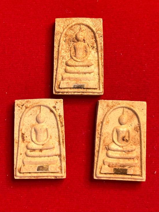 เคาะเดียวแดง พระสมเด็จฝังตะกรุด ไม่ทราบที่ ไม่ทราบปี ( 1 กระดาน 3 องค์ )