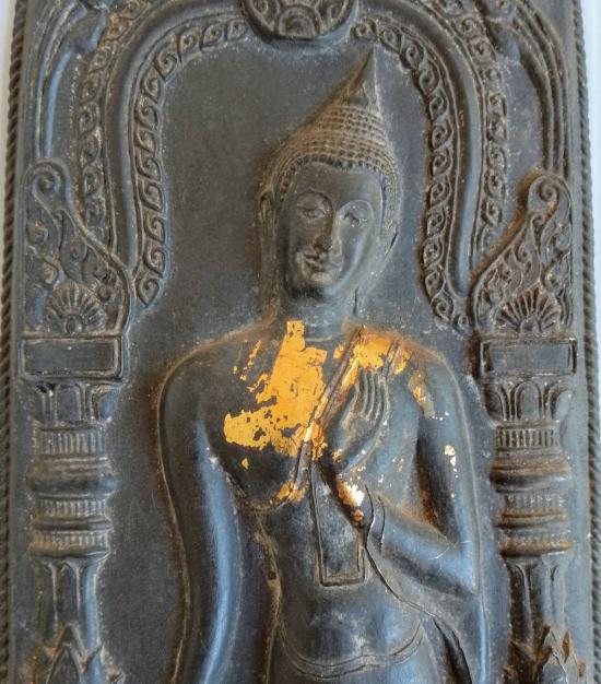 พระบูชาพระลีลากำแพงศอก หลังพระพุทธบาท วัดพระรูป จังหวัดสุพรรณบุรี ขนาด 4 X 12 นิ้ว