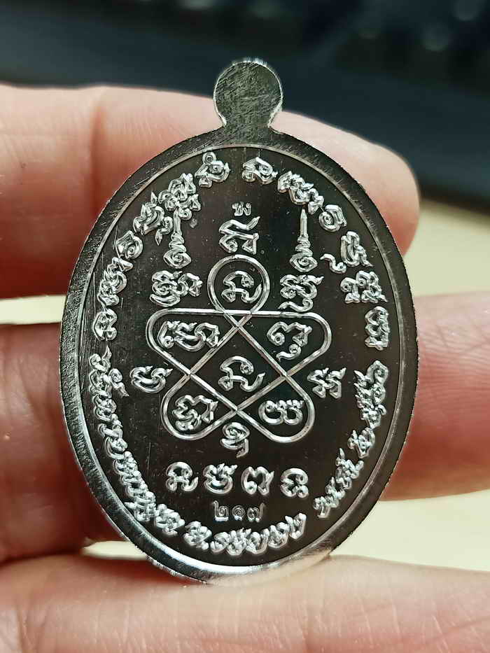 วัดใจ 100 เหรียญอายุยืน หลวงพ่อรวย อคคฺสาโร วัดมาบตาพุด ระยอง ปี 2566 ชุบเงิน หน้ากากอัลปาก้าซาติน หมายเลข 217 กล่องเดิม