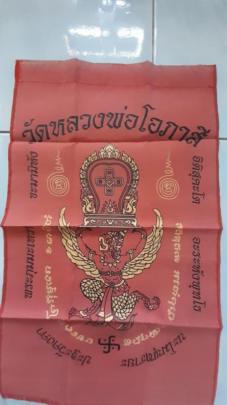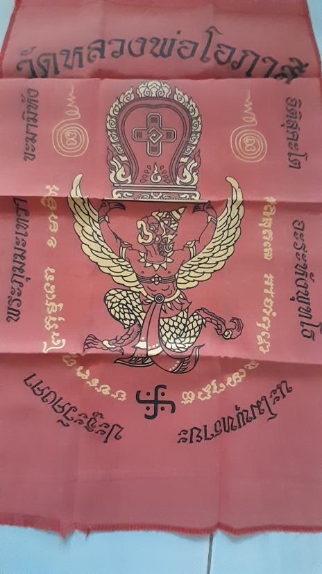 วัดใจเคาะเดียว........100.......ผ้ายันต์ครุฑแบกเสมา หลวงพ่อโอภาสี ขนาด 11 x 18 นิ้ว |