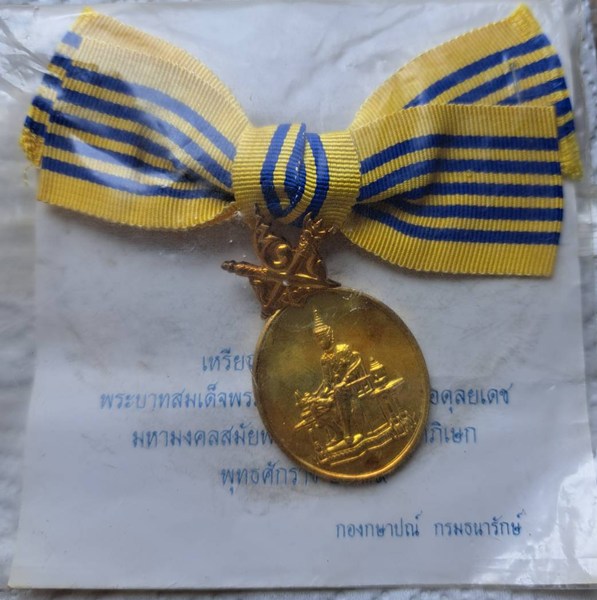 เหรียญที่ระลึกประดับแพรแถบ พระราชพิธีฉลองสิริราชสมบัติครบ 50 ปี ( กาญจนาภิเษก ) ปีพุทธศักราช 2539 เนื้อเงิน กะไหล่ทอง (สตรี) |