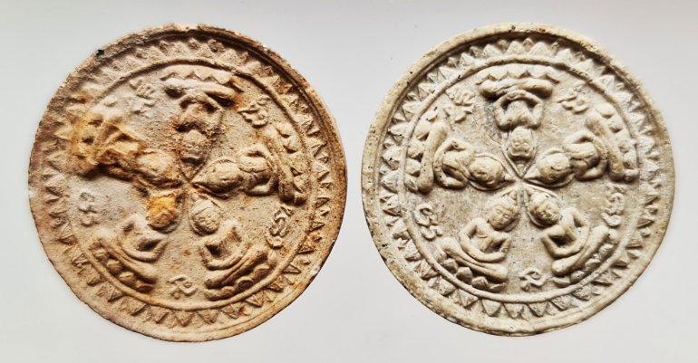 พระผงจันทร์ลอย พระยุคต้น หลวงปู่ละมัย ( ลมัย ) ฐิตมโน ( สหธรรมิก หลวงปู่หมุน วัดบ้านจาน, หลวงปู่สรวง เทวดาเล่นดิน, ครูบาอิน อินโท ) ปี2543 จำนวน 2 องค์