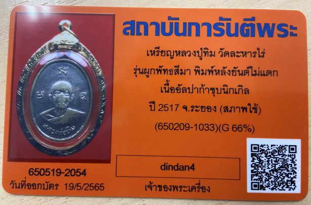 เหรียญผูกพัทสีมา (หลังยันต์ไม่แตก) เป็นบล๊อคนิยมที่สุด หลวงปู่ทิม วัดละหารไร่ จ.ระยอง ปี2517 เลี่ยมทองพร้อมใช้ครับ มาพร้อมบัตรรับรอง สภาพใช้นะครับ เป็นเหรียญยอดนิยมของหลวงปู่ทิม ที่มีประสบการณ์การสูงมากจริงๆครับ