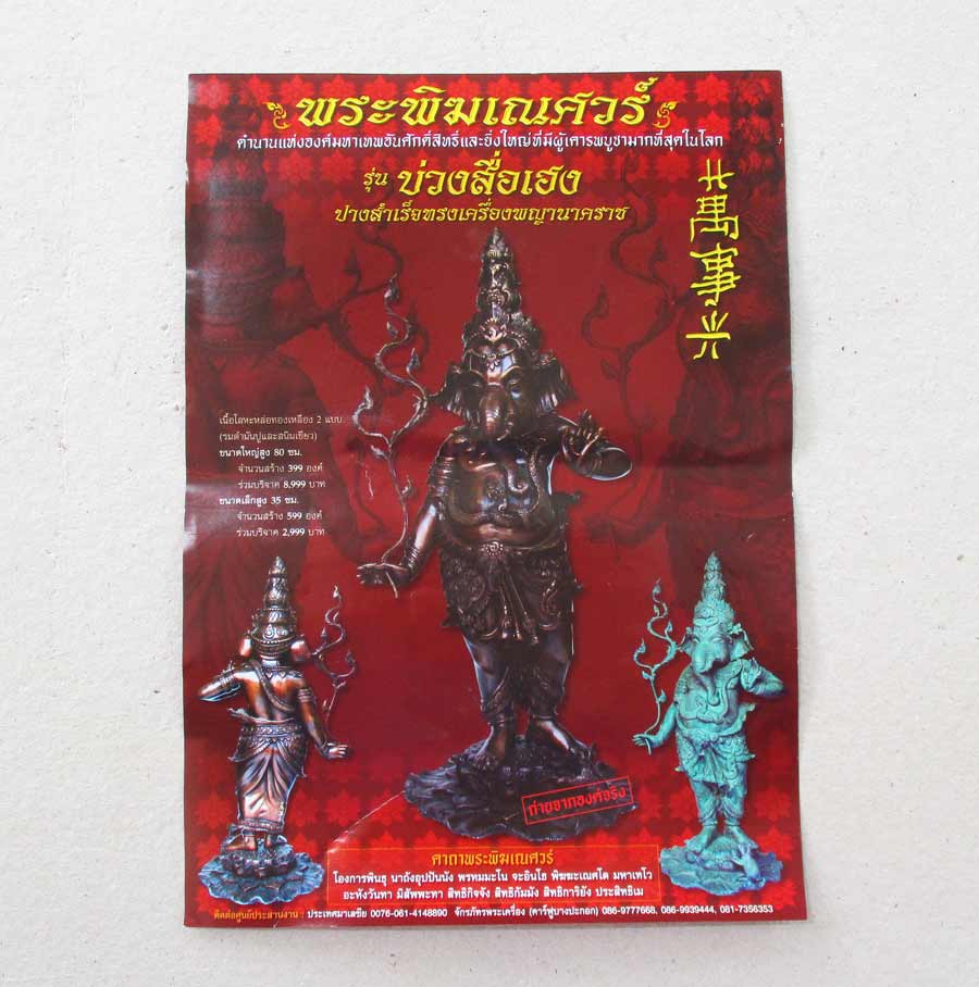 พระพิฆเนศวร์ยืนบนดอกบัว ปางสำเร็จทรงเครื่องพญานาค รุ่น บ่วงสื่อเฮง สูงรวมฐาน 17 นิ้ว เนื้อโลหะผสมผิวแห้งหิ้ง !!
