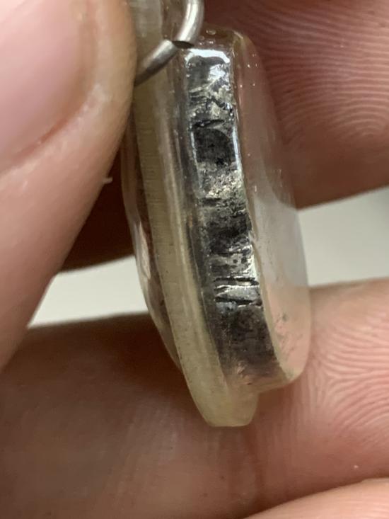 พระปิดตาด้านข้างแต่งเก่าเลี่ยมกรอบเดิมไม่ทราบที่
