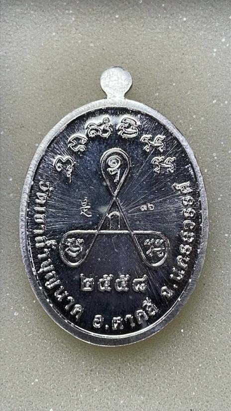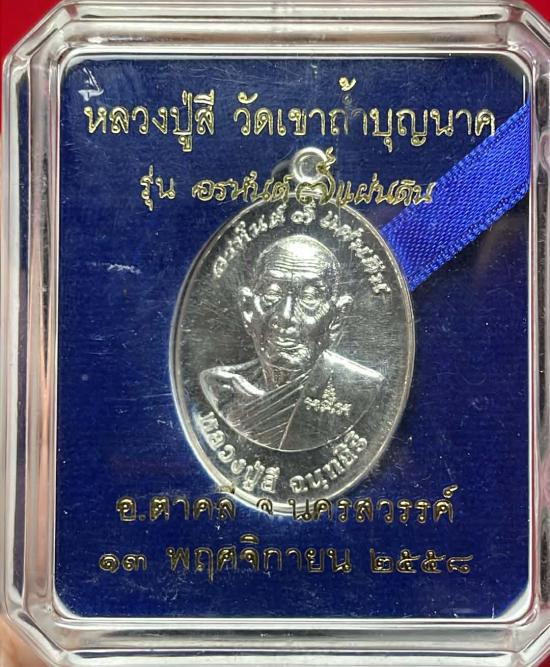 เหรียญรูปไข่ครึ่งองค์เนื้อเงินหลวงปู่สีวัดถ้ำเขาบุญนาครุ่นอรหันต์ 7 แผ่นดินปี2558 |