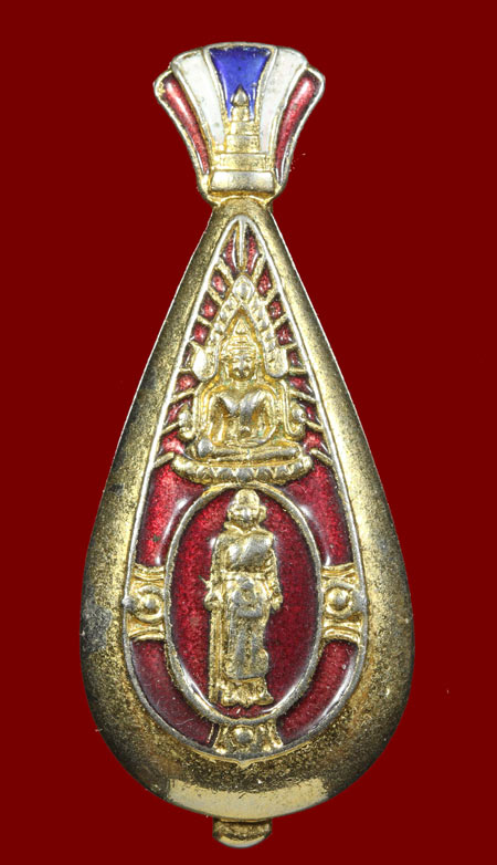 แหนบยืนถือไม้เท้า ด้านบนพระองค์ปฐม หลังยันต์เกราะเพชร พระราชพรหมยาน (หลวงพ่อฤาษีลิงดำ) วัดท่าซุง จ.อุทัยธานี กะไหล่ทองลงยา สวย |