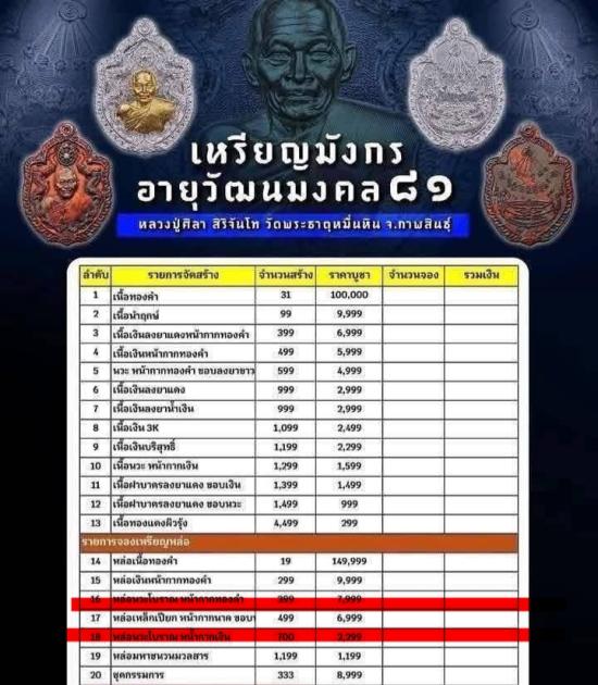 วัดใจ เลขสองหลักสวยๆ 70 หลวงปู่มหาศิลา สิริจันโท(หลวงปู่ศิลา) อายุวัฒนะมงคล81 เหรียญมังกร "เนื้อหล่อเหล็กเปียก หน้ากากนาคขอบนาค " ราคาจอง 6999_ สร้าง499 เหรียญ เลี่ยมเก็บผิวอย่างดีครับ รับประกันพระแท้ |