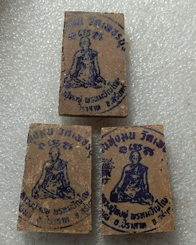 สมเด็จหลังตราปั้มหมึก+ภาพ หลวงปู่หงษ์ พรหมปัญโญ วัดเพชรบุรี จ.สุรินทร์ 3 องค์